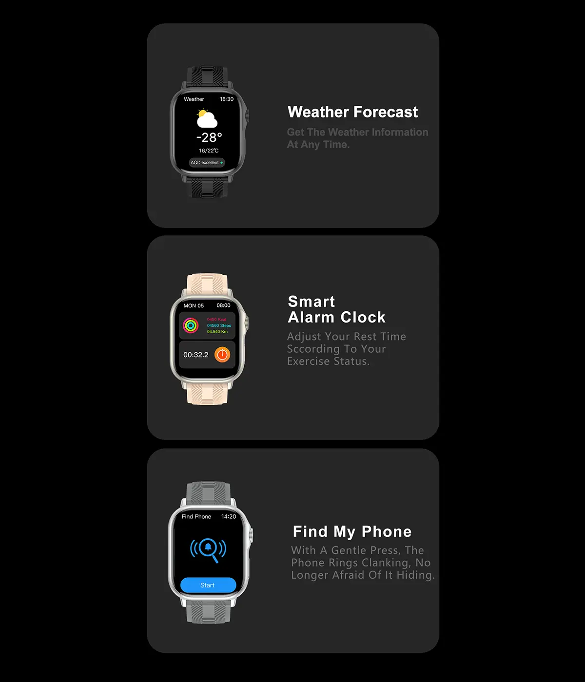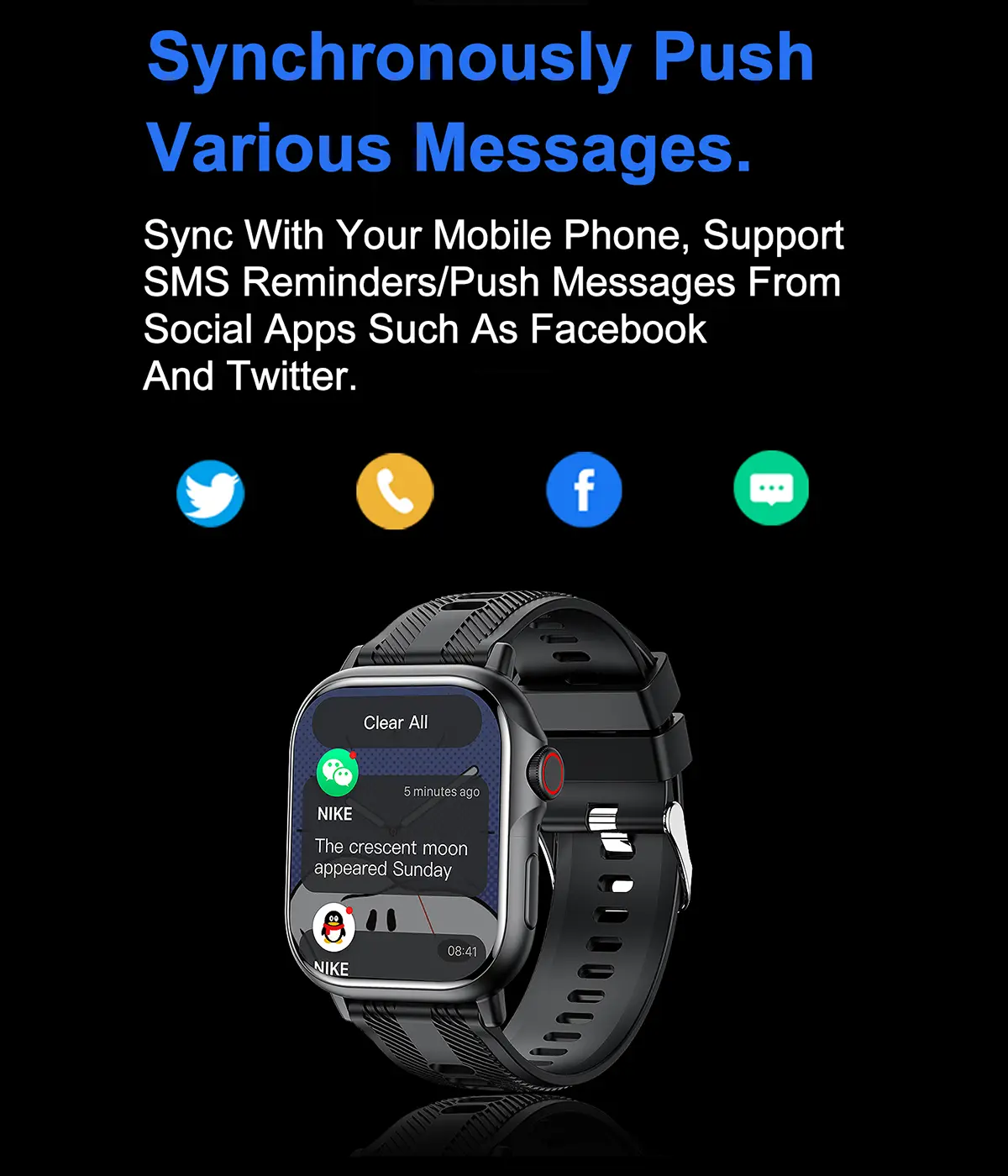 Smart Notifications: Receive message alerts, SMS reminders, event reminders, and app notifications instantly.