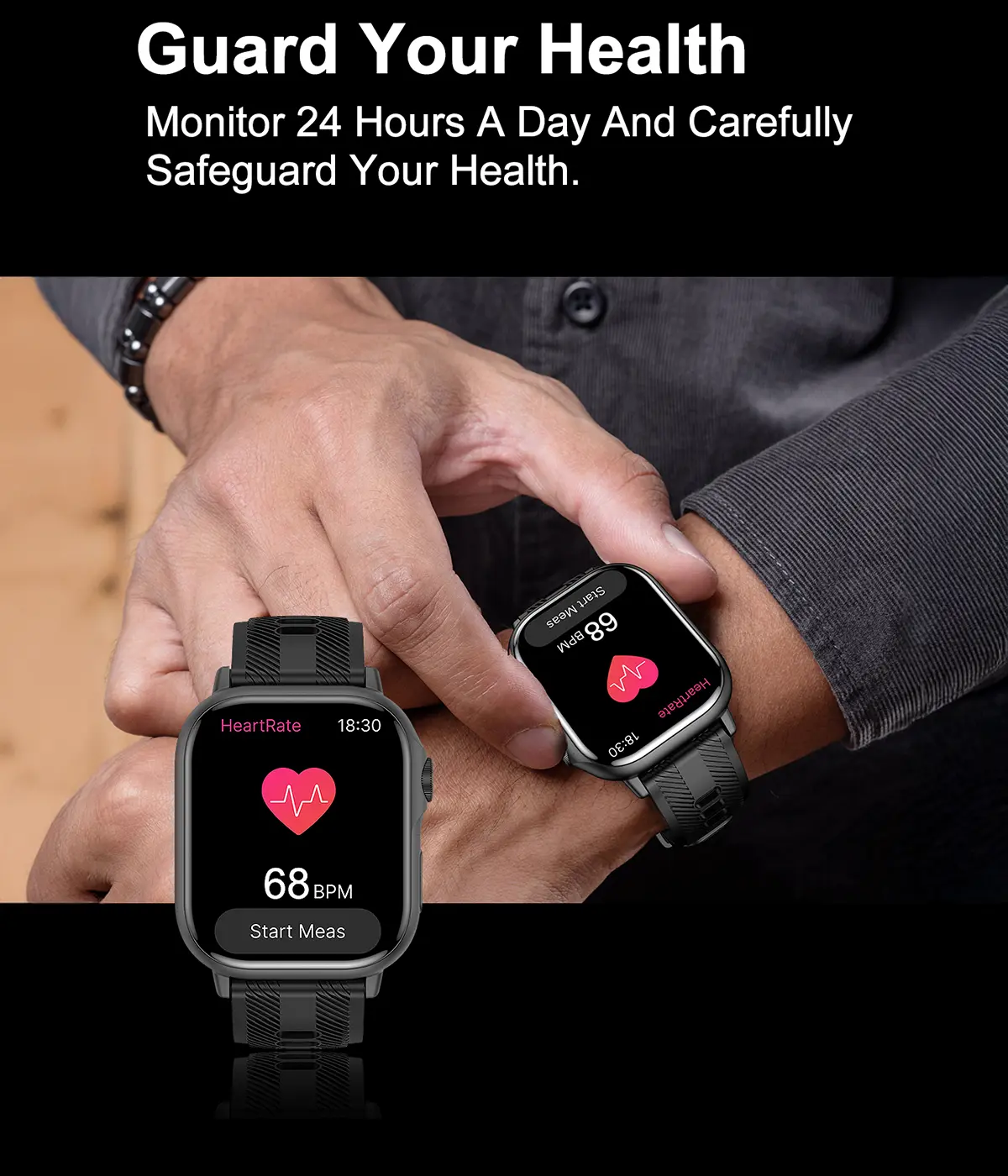 Heart Rate Monitor: Continuous 24/7 heart rate tracking with alerts for abnormal readings, helping you understand your cardiovascular health.