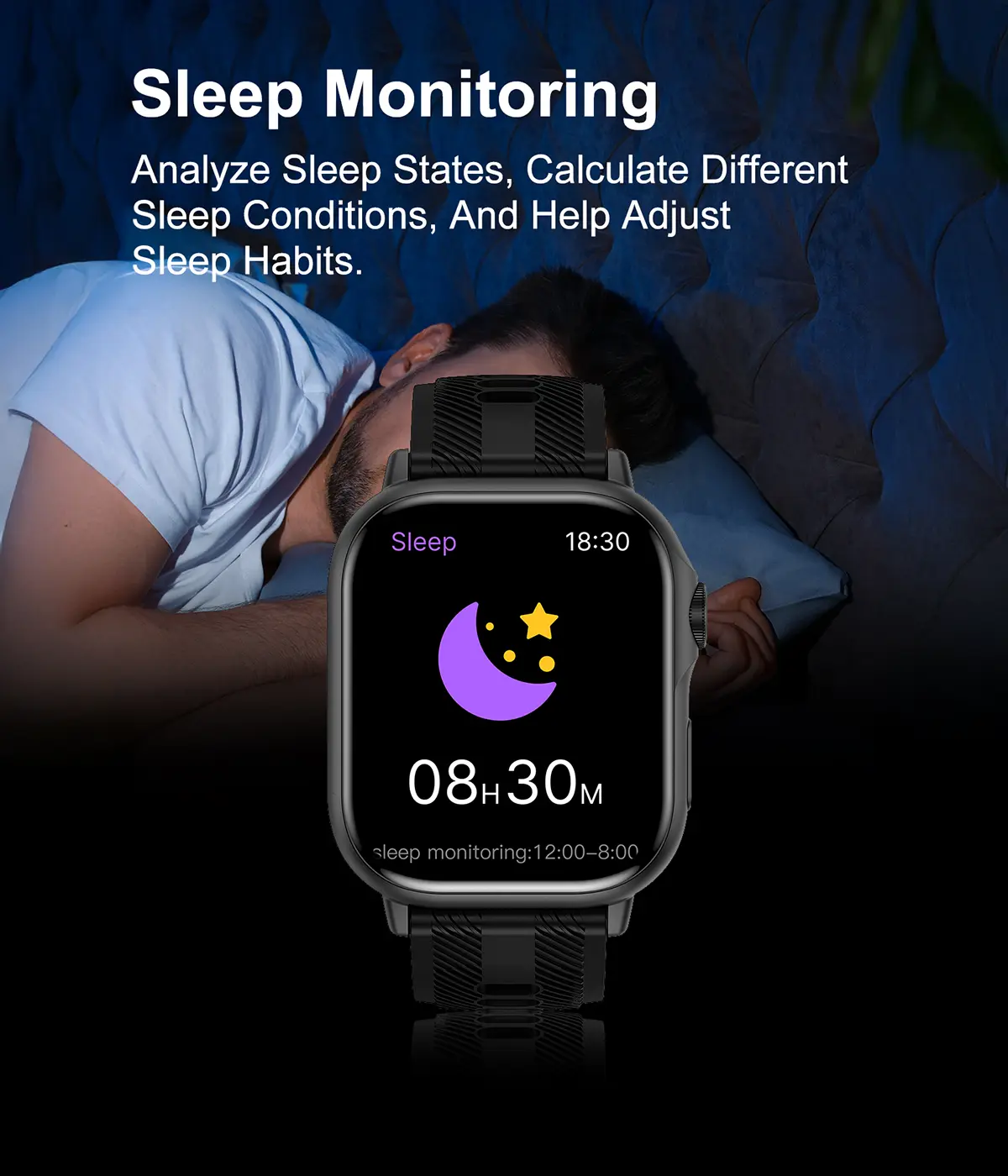Sleep Monitor: Automatic sleep tracking with detailed analysis of deep sleep, light sleep, and wake periods, plus personalized insights to improve your rest.