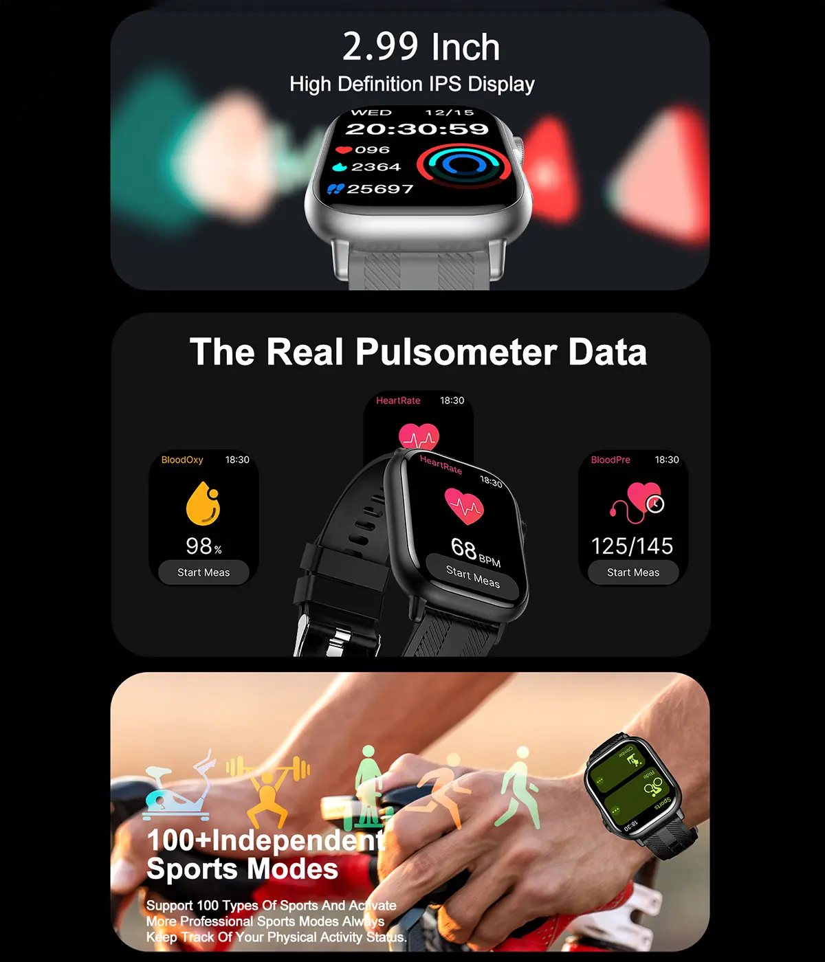 Multiple Sports Modes: Track your workouts with real-time calories tracking and comprehensive activity data.