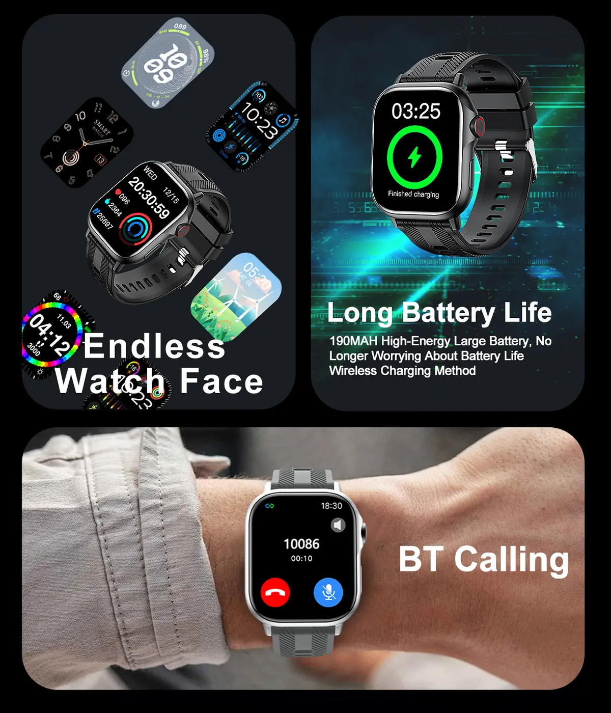 Custom Watch Faces: Personalize your watch with a variety of stunning digital faces or upload your own photos for a truly unique look.