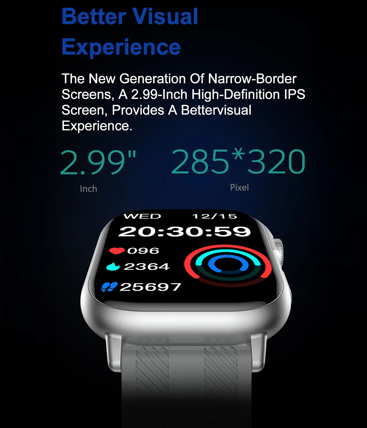 Larger 2.07″ TFT Display: Expansive 320*320 resolution screen with vibrant colors and Always-on Display option for superior visibility.